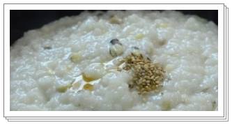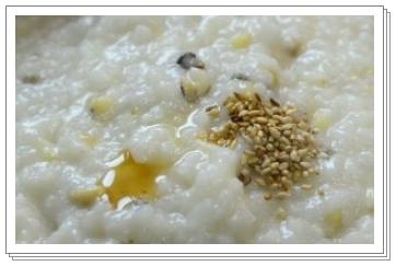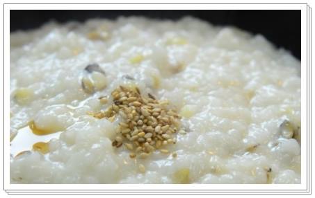 전복죽 맛있게 끓이는 방법도 중요하지만 마지막 먹을 때 고명도 필수입니다. 전복죽 끓이고 난 뒤 먹기 전 참기름을 1스푼 넣고, 통깨나 갈아놓은 깨를 뿌려줍니다. 그 뒤 잘 비벼서 먹으면 완성입니다.