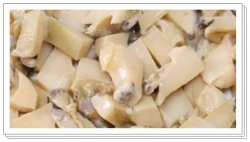 전복 날개와 껍질 사이를 숟가락으로 살살 돌려가면 전복이 불리되고, 그 다음 내장의 모래주머니를 없애줍니다. 이 곳이 바로 전복 배설물이 쌓이는 부분입니다. 여기까지 제거한 뒤 마지막으로 전복 입을 없애야 합니다. 전복 입 제거하면 길다란 것이 같이 나오는데 그건 전복 식도입니다. 그래서 그것까지 같이 없애주면 됩니다.