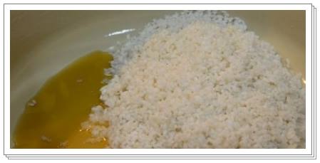 쌀 불리는 과정은 전복을 손질할 때 미리 해두면 편합니다. 쌀을 30분 정도 충분히 불린 다음에 물만 따라 버리고 거기에 참기름을 2스푼 넣어주면 됩니다.