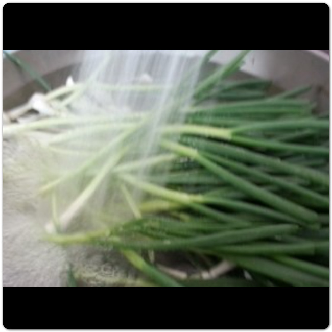 파 다듬기는 손이 많이 가긴 하지만, 그래도 가족들과 쪽파 다듬으면서 도란도란 이야기할 수 있는 시간도 될 수 있으므로 껍질도 하나하나 벗겨내주도록 합니다. 쪽파를 씻고난 뒤, 껍질 벗겨내는 작업까지 마무리했다면 한번 더 헹궈준 뒤 쪽파를 체반에 받쳐서 물기를 충분히 제거해주도록 합니다.