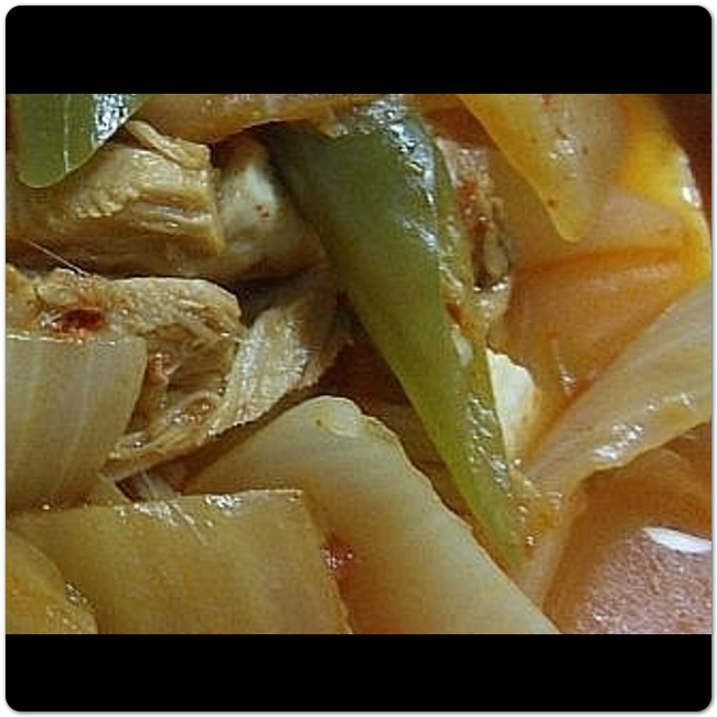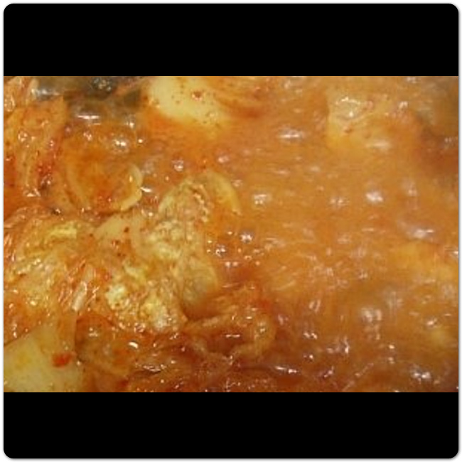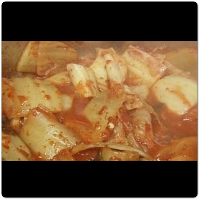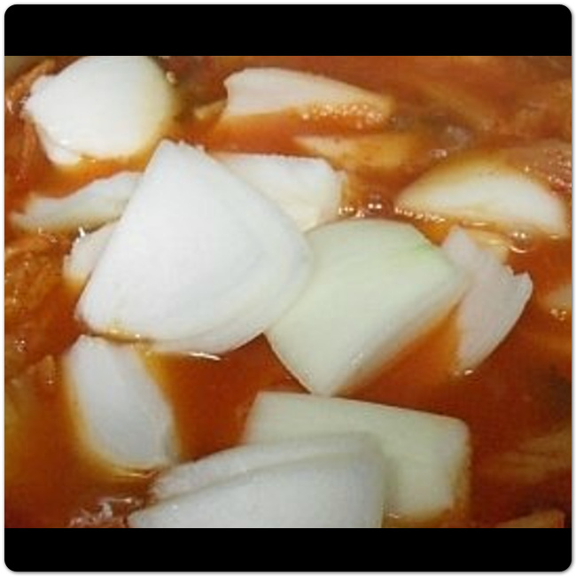 물이든 육수든 김치가 숨이 죽었다면 부어주고, 미리 썰어둔 양파를 먼저 넣어주도록 합니다. 양파를 일찍 넣으면 양파가 잘 익으면서 양파 자체에서 단맛이 나와서 설탕을 굳이 넣지 않아도 됩니다. 조금 달게 먹고 싶다면 양파 1개 통째로 썰어서 넣어주면 됩니다.