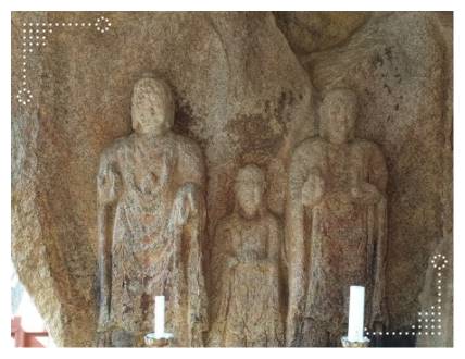 다섯번째 추천 장소는 태을암입니다. 태을암하면 가장 먼저 떠오르는 것이 바로 태안마애삼존불입니다. 태안마애삼존불은 우리나라를 대표하는 국보급 불상입니다. 우리나라 국보 제307호 입니다. 공식 명칭은 태안 동문리 마애삼존불입상이라고 합니다. 조각상을 보면 돌 안으로 세 사람이 조각되어 있습니다. 한 가운데에 있는 사람이 관세임보살, 석가모니 부처는 왼쪽, 그리고 약사여래부처가 바로 오른쪽에 있습니다. 이곳에 가서 향 피우면서 간절한 소원 소망 기도드리고 오시기 바랍니다.