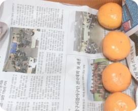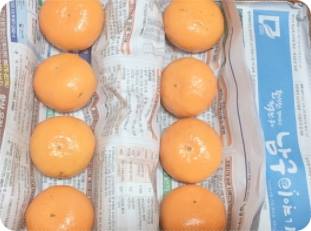 그 뒤 다시 또 신문지를 깔고 제일 끝 부분이 다시 또 귤을 4개정도 놔둡니다. 그리고 신문지 깔고 이런 식의 반복입니다. 상자를 크게 3등분 했다고 치면 1번 자리에 귤 3개->신문 깔기->2번 자리에 귤 3개->신문깔기->3번 자리에 귤 놔두기 등 이렇게 하면 됩니다.
