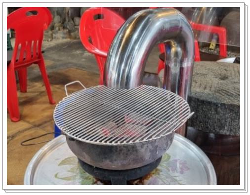 야외에서 운치있게 먹을 수 있습니다. 삼겹살 두께가 매우 두껍고 함께 나오는 반찬도 맛있습니다. 화로에 직접 구워서 먹고, 바로 옆에는 텐트도 있어서 아이들 들어가서 놀기도 좋은 장소입니다. 한 여름이면 사장님이 직접 키우는 포도들이 바로 위에 주렁주렁 매달려 있어서 삼겹살 먹으면서 하나씩 포도를 따서 먹는 재미도 있습니다. 함께 나오는 깨죽도 매우 맛있으므로 현지인만 알고 있는 이 삼겹살 집도 꼭 가보시기 바랍니다.