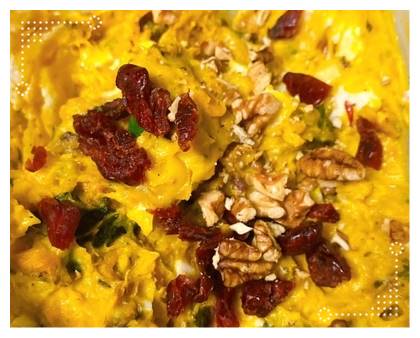 마지막으로 단호박 속살에 마요네즈 1큰술, 후춧가루 조금 넣은 후 견과류와 함께 잘 섞어줍니다. 이때 조금 달달한 맛을 가미하고 싶다면 설탕을 1큰술 정도 넣어주면 됩니다.