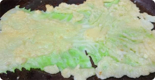 tip) 물이 많으면 배추에 반죽이 전혀 묻어나지 않습니다. 그리고 물이 너무 적으면 부침이 딱딱해집니다. 이 점만 잘 주의해주세요.