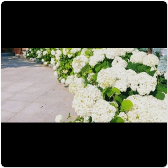 이 길따라 이동하다보면 자연스럽게 수국공원이 나옵니다. 이곳을 걷다보면 팽나무 뿐만 아니라 거리 곳곳 심어진 예쁜 꽃을 구경할 수 있습니다.