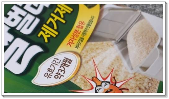 쌀벌레 제거제는 대략 유효기간이 3개월 정도 가기 때문에 구매했던 날을 미리 체크해서 3개월이 지나기 전 교환해주는 것은 필수입니다. 대부분 겨자 추출물을 활용해서 벌레가 생기지 못하게 막기 때문에 해당 제거제만 쌀통에 넣어주기만 하면 벌레가 생기지 않습니다.