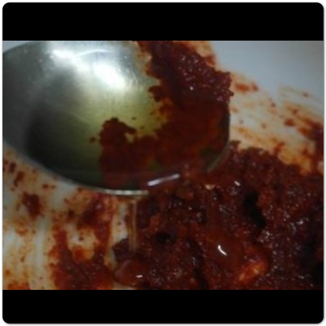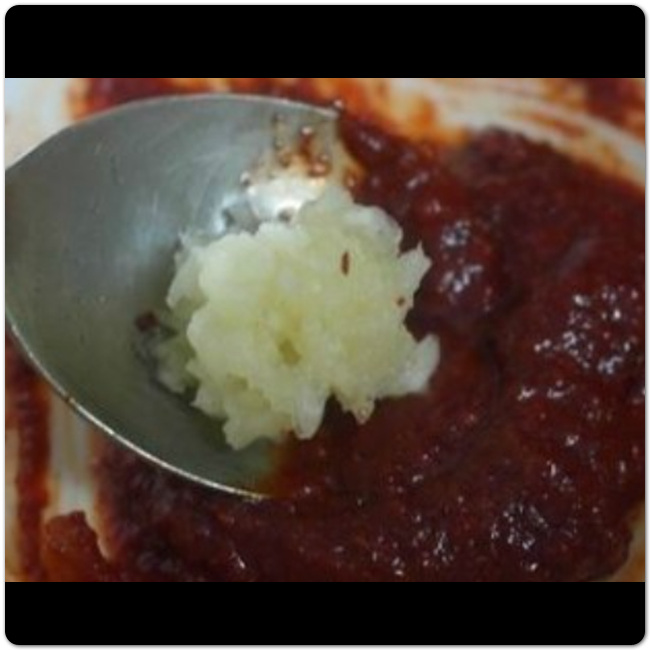이렇게 한 뒤 양념장을 잘 만들어주도록 합니다. 알려드린 비율대로 만들고난 뒤 간을 보고 조금 싱겁게 늒지면 소금을 더 넣으면 됩니다. 만일 집에 있는 고춧가루가 그리 맵지 않다면 고춧가루도 간을 보면서 조금씩 더 추가하면 됩니다.