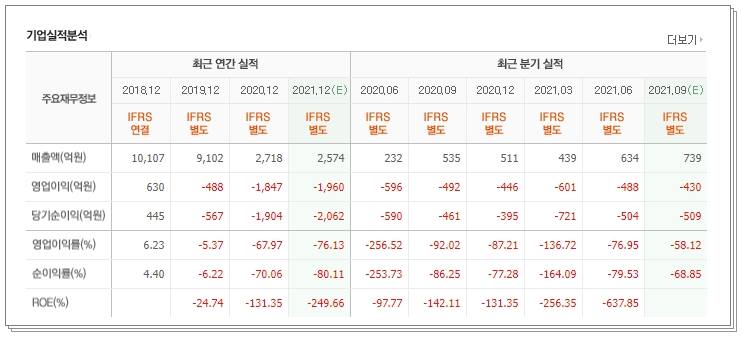올해는 그 당기순이익이 -2062억원 정도 되리라 보고 있습니다. 현재 매출액을 제외하고는 모두 적자로 재무제표 흐름은 좋지 않으니 참고하시기 바랍니다.