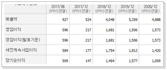 2018년 단기적 흐름이 아니라 이 흐름은 2019년과 2020년까지 이어집니다. 영업이익 또한 매 해년 증가하면서 2020년에는 1.5천억원을 달성한 바 있습니다. 이 추이라면 2023년 도깨비 출시와 함께 매출이 1조원을 달성하지 않을까 예상됩니다.